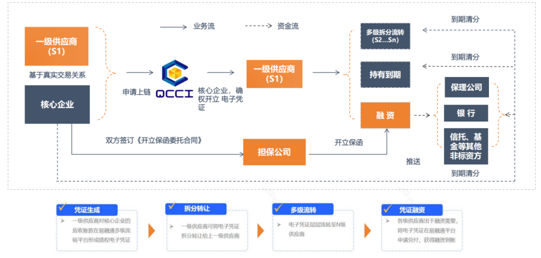 “青投易融通”供應鏈金融平臺是由城金集團所屬融資租賃公司牽頭,利用區塊鏈技術的可拆分信用流轉憑證進行系統開發,可滿足不同企業融資需求。該平臺整合融資租賃、融資擔保、商業保理、小額貸款等金融牌照資源,將方便快捷的金融服務擴展至核心企業供應鏈上的多級供應商,真正實現金融服務的“最后一公里”,使得核心企業供應鏈上更多中小企業更易于獲得便捷低成本的融資服務,提升了供應鏈業務放款的時效性,實現了供應鏈金融業務的全線上化、智能化操作。