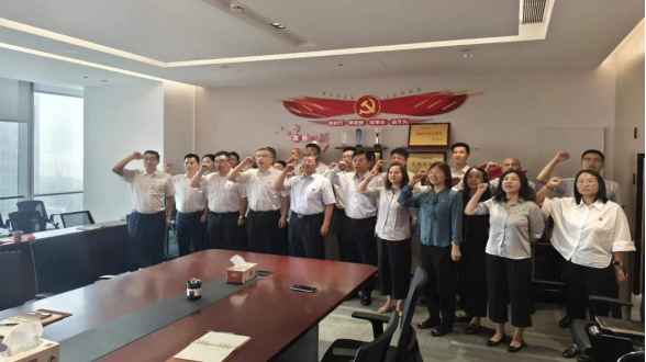 青島航空、新能源集團、城金集團、城市更新集團、國際集團、產業園集團、創投公司、數字科技公司等單位開展主題升旗儀式、主題黨日活動、黨員培訓等活動,組織黨員重溫入黨誓詞:“我志愿加入中國共產黨,擁護黨的綱領,遵守黨的章程……為共產主義奮斗終身,隨時準備為黨和人民犧牲一切,永不叛黨!”他們舉起右拳許下錚錚誓言,感悟信仰力量,表達了黨員對黨和人民作出的莊嚴承諾。