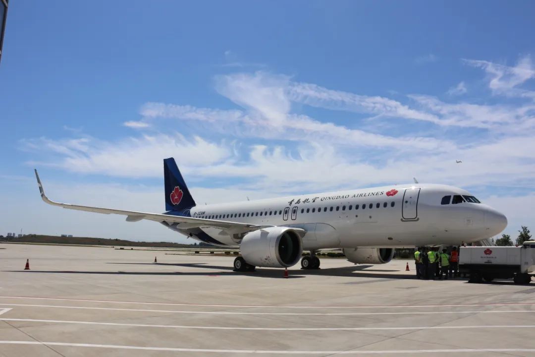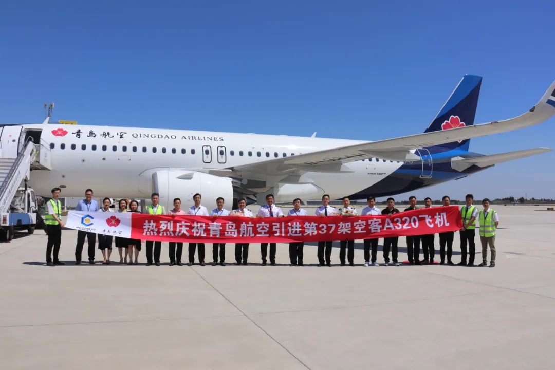 6月27日9時53分,一架身披全新耐冬花涂裝的空客A320neo飛機從法國圖盧茲順利抵達青島膠東國際機場,這是青島城投集團旗下青島航空今年到場投入運營的首架新飛機,注冊號為B-32AM,標志著青島航空全空客機隊規模擴增至37架,運力規模進一步擴大。