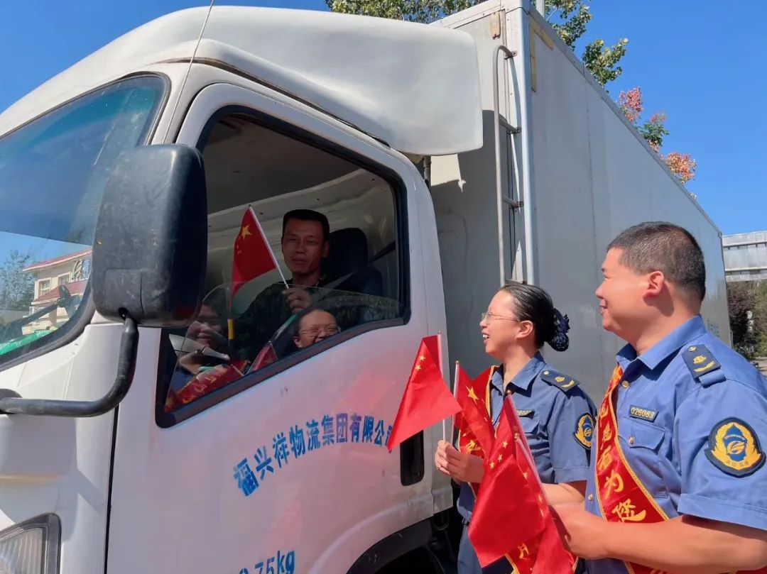 (工作人員與司機進行國慶主題互動)