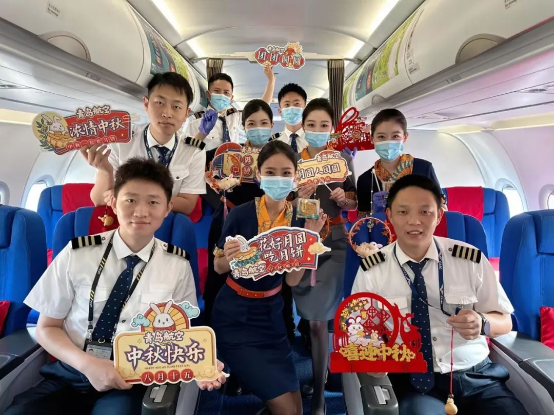 與此同時,中秋及國慶節(jié)當天,青島航空耐冬花示范組分別開展了中秋、國慶主題客艙活動,在萬米高空通過與廣大乘機旅客積極互動,共慶家國美好時刻,共享雙節(jié)喜慶氛圍。