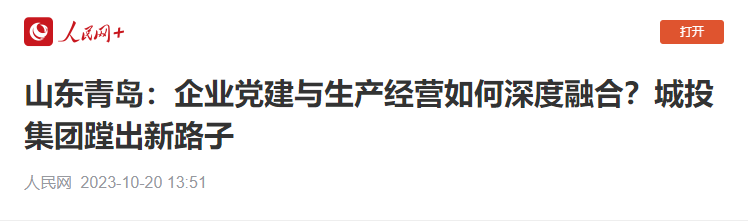人民網:企業(yè)黨建與生產經營如何深度融合?青島城投集團蹚出新路子