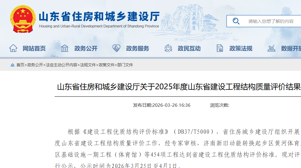 青島城投集團五項工程榮獲2025年度山東省建設工程優質結構獎