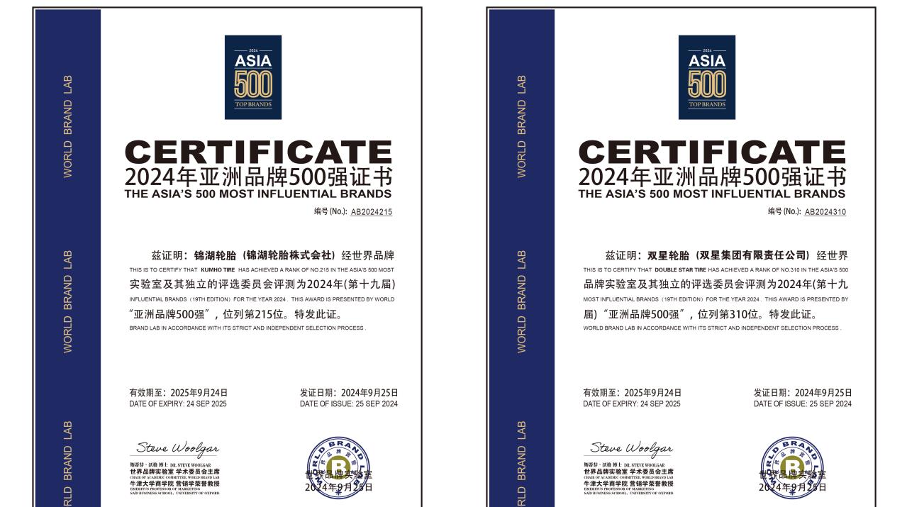 9月25日,由世界品牌實驗室(World Brand Lab)主辦的2024年亞洲品牌大會在香港召開。雙星集團旗下兩大品牌錦湖輪胎、雙星輪胎同時入選“亞洲品牌500強”榜單。其中,錦湖輪胎憑借不斷增長的發(fā)展實力和品牌影響力,位居“亞洲品牌500強”輪胎品牌第二位;雙星輪胎憑借在消費者群體中優(yōu)秀的品牌認知和品牌形象,位居中國輪胎行業(yè)第一位,持續(xù)領跑中國輪胎品牌。本屆大會主題為“可持續(xù)領導力:亞洲品牌在全球市場的崛起”。今年是