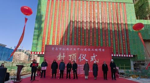 青島市公共衛生中心項目1#、2#樓順利完成主體結構封頂