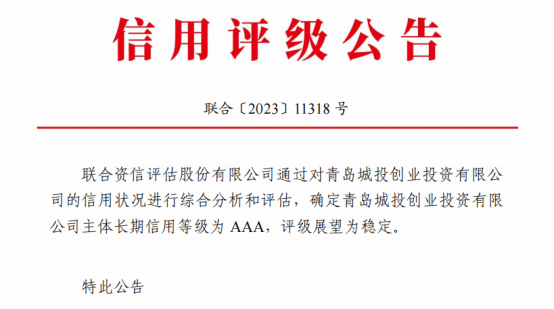 青島首家AAA評級創投機構誕生!城投集團3A主體評級企業達4家