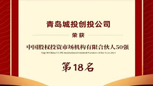 青島城投創投公司榮登中國股權投資市場機構有限合伙人榜單