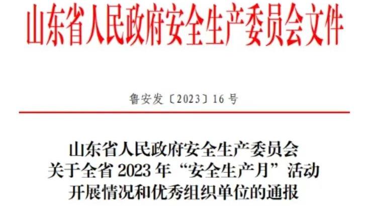 青島城投集團榮獲“全省2023年安全生產月活動優秀組織單位”