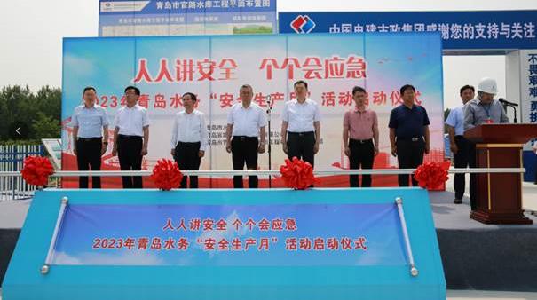 6月1日下午,官路水庫工程建設現場,市水務局會同青島城投集團官路水庫公司舉辦2023年全市水務“安全生產月”活動啟動儀式,市政府黨組成員、副市長宋明杰,市水務局、膠州市相關領導,城投集團黨委委員、副總經理林松濤出席活動,項目施工單位、監理單位、設計等單位代表參加活動。(圖為“安全生產月”活動啟動現場)儀式現場,宋明杰副市長宣布青島市水務安全生產月活動正式啟動,市水務局主要領導做指導發言,官路水庫工程項