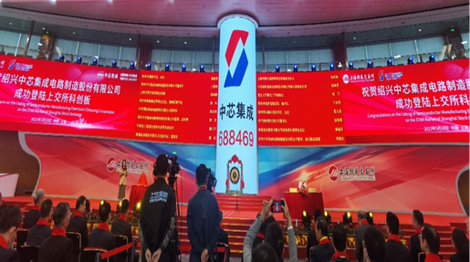 2023年5月10日,青島城投集團創投公司投資企業——紹興中芯集成電路制造股份有限公司(以下簡稱“中芯集成”)在上海證券交易所科創板掛牌上市,成功登陸A股資本市場,創投公司負責人受邀出席中芯集成上市儀式。中芯集成科創板首發新股數量16.92億股,發行價格5.69元/股,募集資金96.27億元。上市首日收盤價6.3元/股,漲幅超10%,市值達426億元。(圖為中芯集成上市儀式現場)創投公司于2020年12月通過盈科基金出資3.2億元參與中