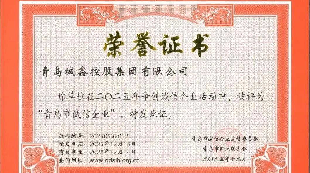 青島城鑫控股集團榮獲“青島市誠信企業”